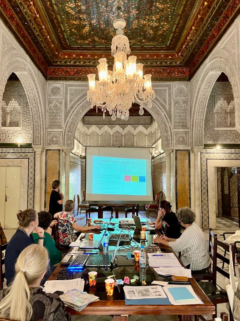 UIA Architecture & Children ordnade en konferens och ett arbetsgruppsmöte i Tunis 22 – 25 maj. Suzanne de Laval (i förgrunden till vänster) deltog och bidrog med svenska erfarenheter av hur man framgångsrikt kan engagera barn och ungdomar i planering.